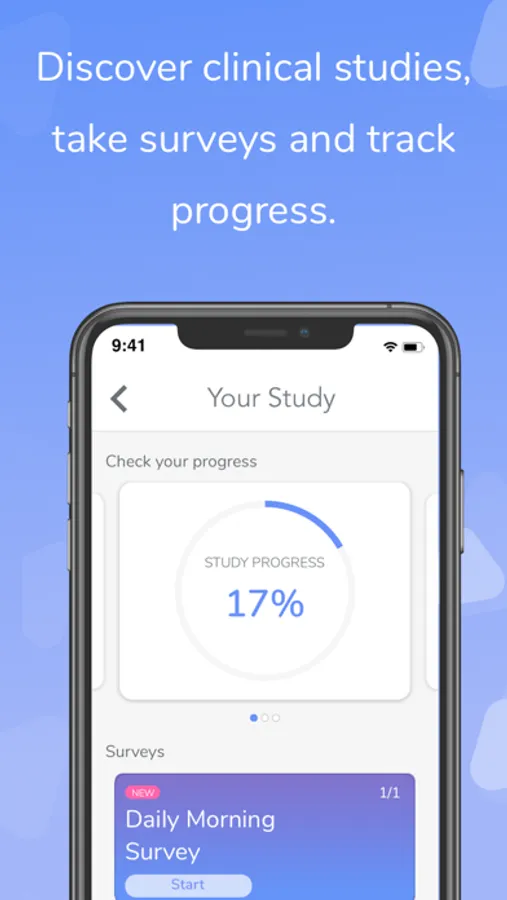 - Monitor study progress by viewing upcoming surveys and tracking participation