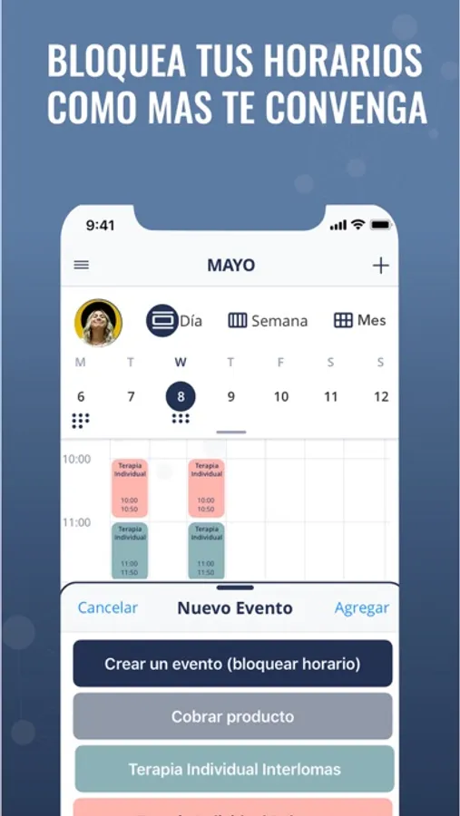 - Programa citas según tus tiempos de trabajo y bloquea horas cuando no esté disponible