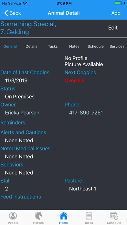Web-based mobile application to facilitate the oversight of horse health and other stable management operations. Add clients and view/add detailed information about animals owned, tasks, and services provided. Add animals and associate them to an owner, enter/view medical information, add/edit services provided for the animal, and keep notes on the animal.