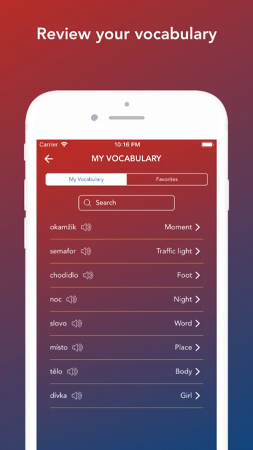 Learn 3500 Czech nouns, adjectives and verbs to enrich your vocabulary. Memorize most common Czech words. Listen pronunciation of the words. Learn with word games, phrases and word lists. Best flash card app to learn Czech most common vocabulary and words!