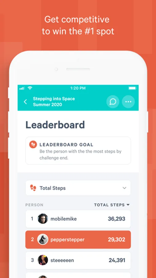 Our challenge types offer a variety of ways to compete. Whether you're seeking a highly competitive leaderboard, a daily activity goal, or a long-term step target, we’ve got you covered. Compete on steps or active minutes.