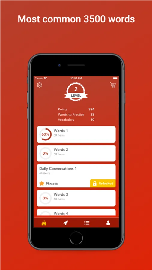 - Earn points by learning and practicing. Then unlock phrases and word lists.