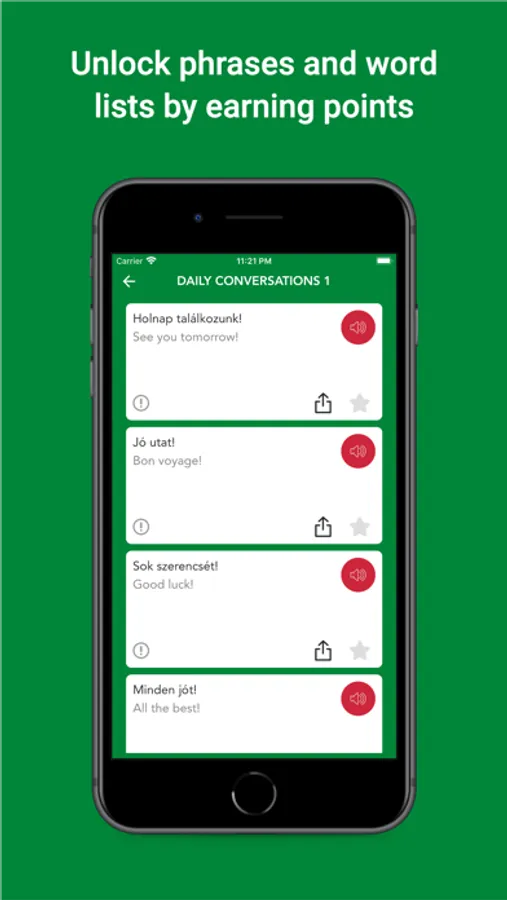 - Earn points by learning and practicing. Then unlock phrases and word lists.