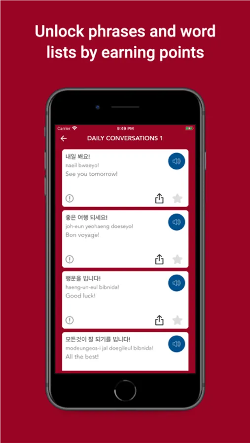 - Earn points by learning and practicing. Then unlock phrases and word lists.