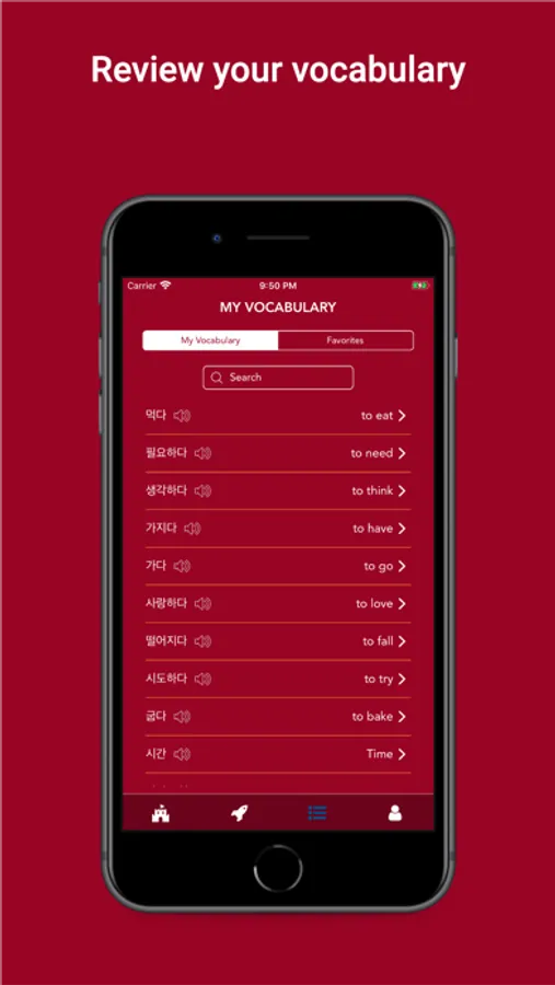 Learn 3500 Korean nouns, adjectives and verbs to enrich your vocabulary. Memorize most common Korean words. Listen pronunciation of the words. Learn with word games, phrases and word lists. Use flash cards to master frequently used, core vocabulary.