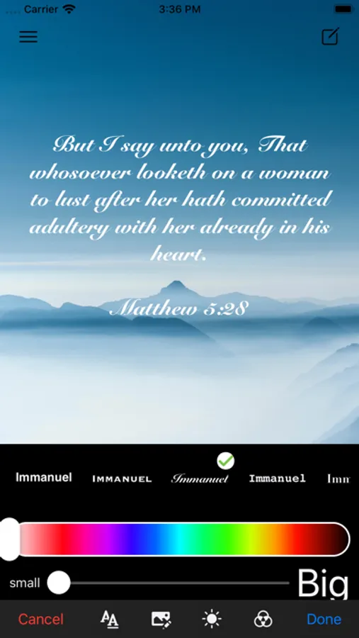 * Customizable bible verse font, color, background image.