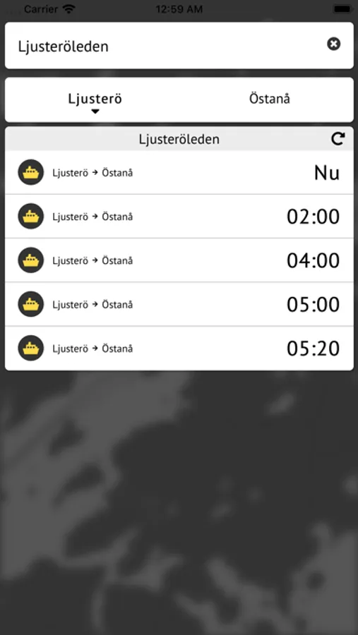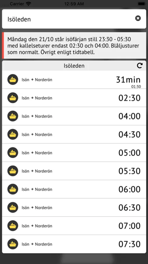 Man kommer snabbt in och ser när de nästkommande färjorna ska gå. Har man valt en färjeled så kommer man in på samma igen nästa gång man öppnar appen.