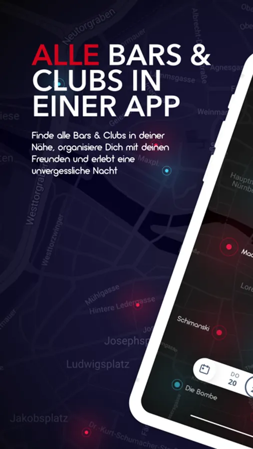 Finde die Events Deiner Lieblingsclubs & Bars auf der Places App und tauche in das vielseitige Nachtleben von Nürnberg ein.
