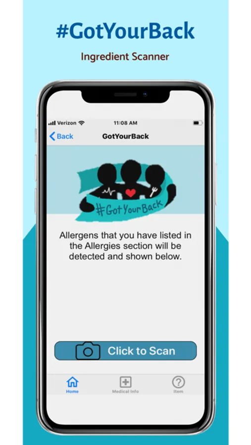All data entered into the #GotYourBack app will not be shared outside the app or with third parties. When scanning ingredients, please take caution to double-check the ingredient label yourself in case of inaccuracy with the ingredient lookup feature. All rights reserved to #GotYourBack app product owner.