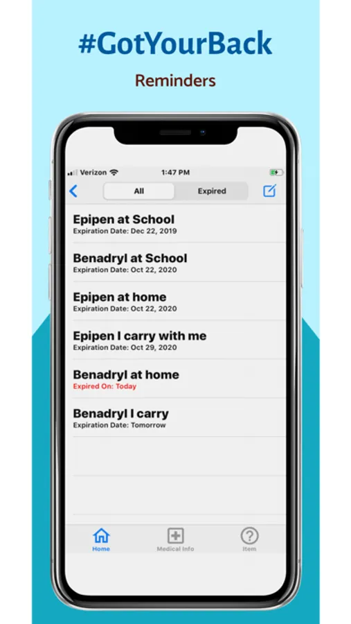 #GotYourBack provides notifications if a medication expires or if a reminder is set. Enable notifications directly on the app or go to Settings>>#GotYourBack>>Notifications>>Allow Notifications
