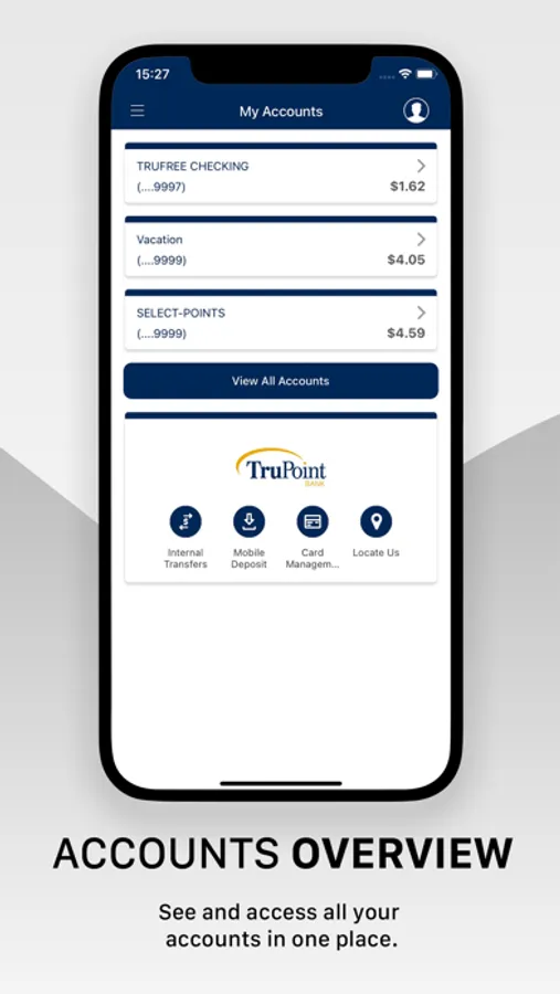 TruPoint Bank Mobile Banking App allows you to safely and securely access your accounts anytime, anywhere.