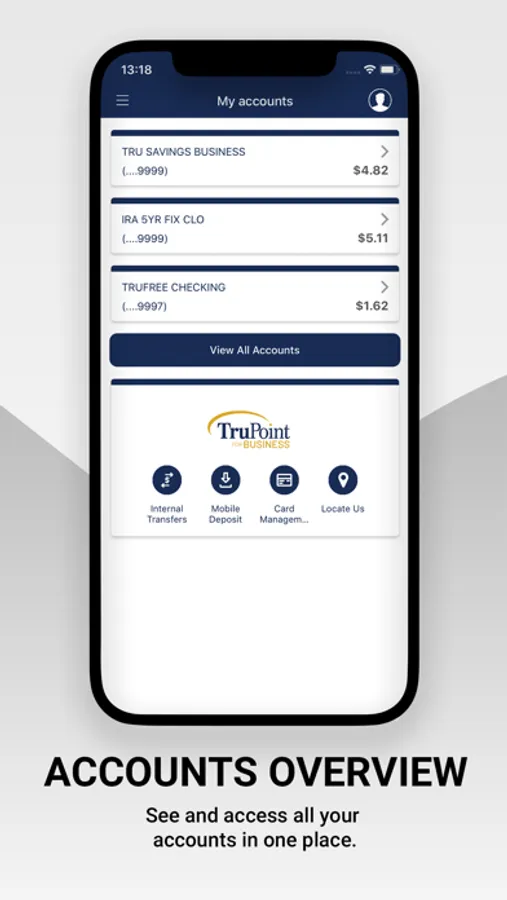 A TruPoint Bank online banking account is required. Third party standard data and messaging rates may apply. Location permission is needed to find the nearest locations.