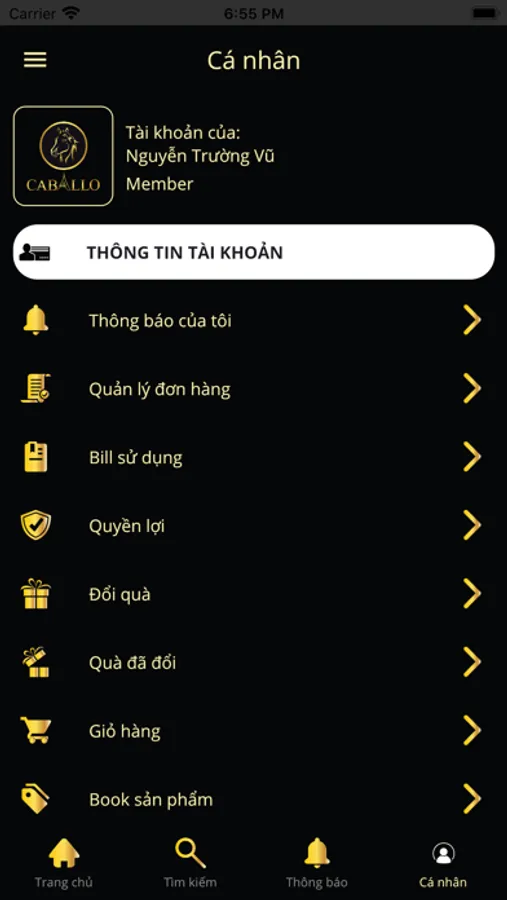 Thông báo: Xem thông báo từ Caballo về thông tin sản phẩm, khuyến mãi, tin tức,...