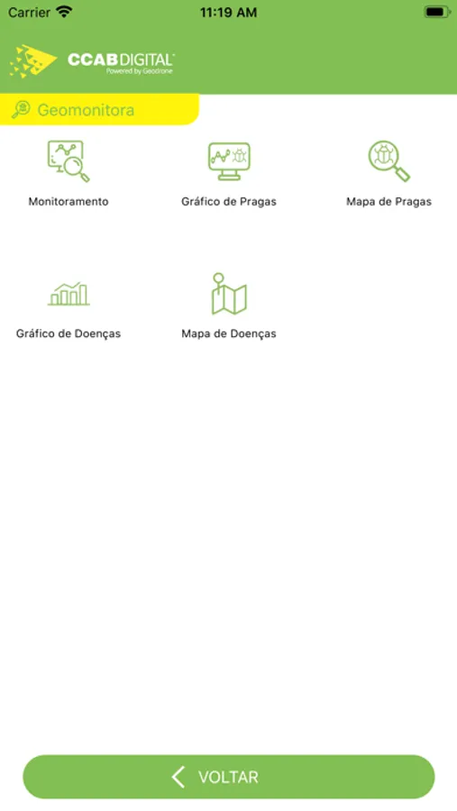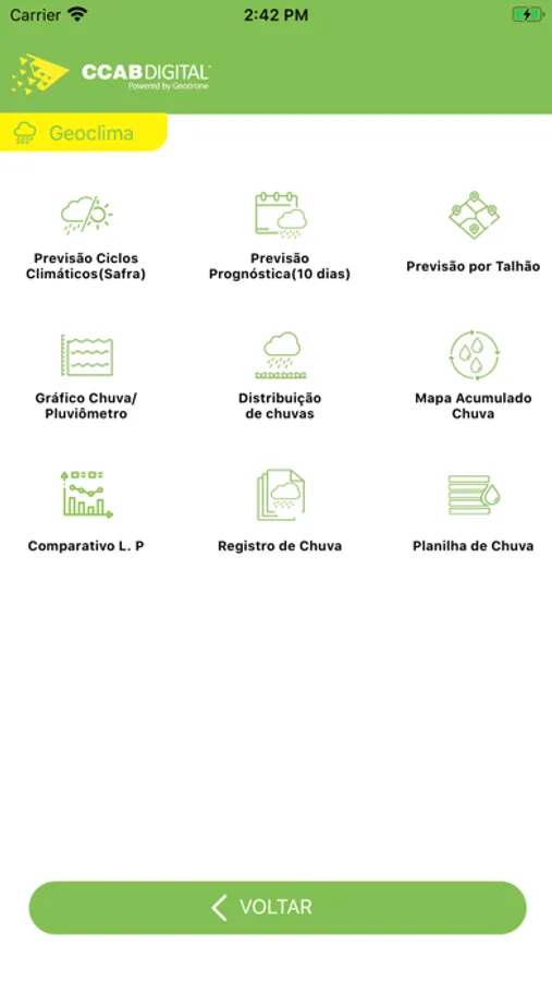 Voltado para uso de pessoas que fazem parte de cooperativas e funcionários que trabalham em fazendas, o aplicativo serve para levantamento de dados agronômicos e meteorológicos na agricultura. Através dele obtem-se previsão do tempo personalizada para a fazenda, registro de dados históricos de chuvas, além de registros de pragas e doenças em lavouras.