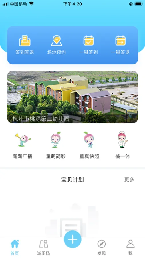 幼儿园通过桃源游乐园APP线上进行场地预约,线下在自然的环境、创造的活动,和谐的师幼互动中,呵护孩童心灵的原生态,让幼儿的爱心,好奇心,快乐之心得到激发与保护,为幼儿营造美好的童年生活。