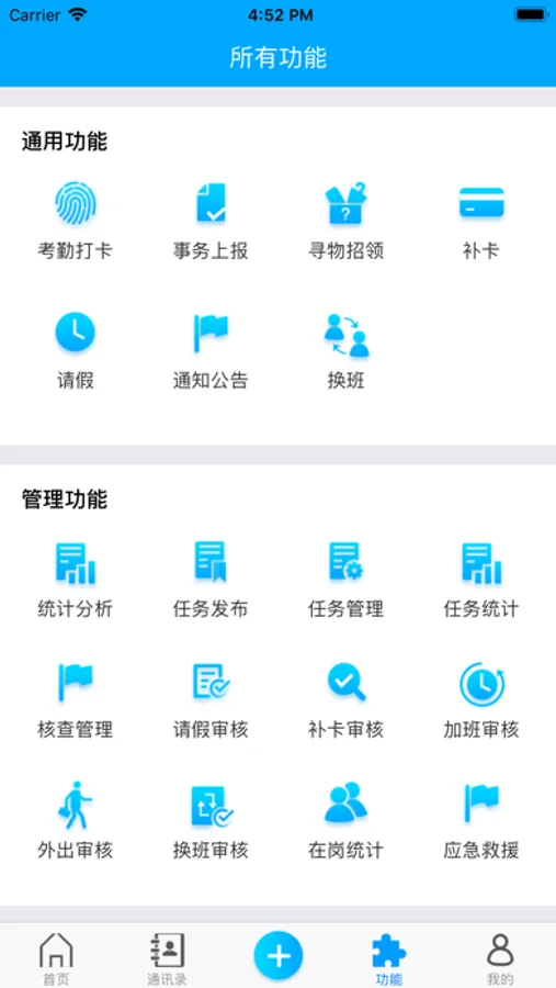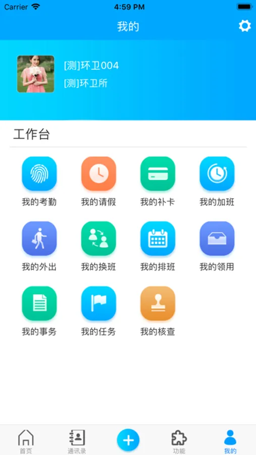 云南玉龙雪山景区管理APP,用户登录考勤打卡,接收任务、通知等,上报事务,参与应急救援,查看企业通讯录等功能。