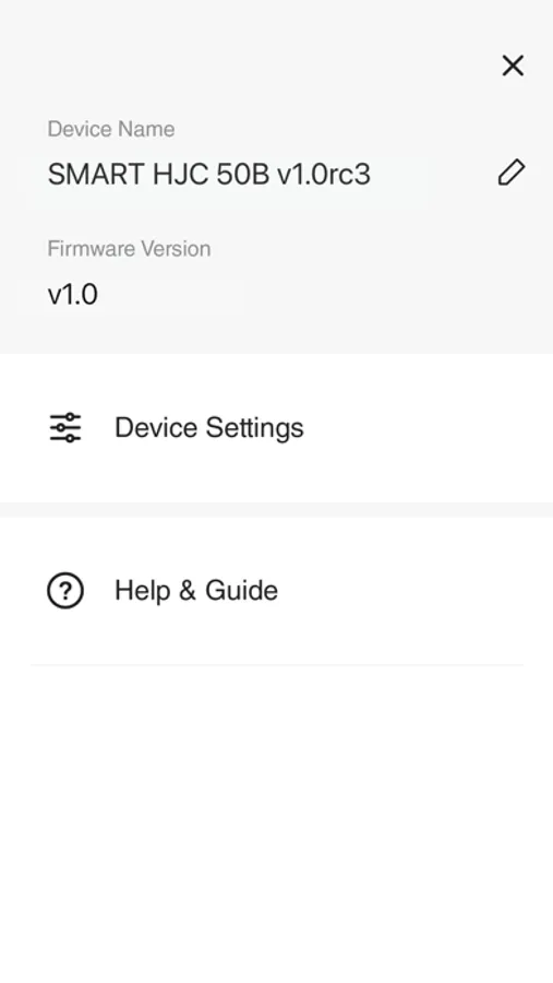 *Note: SMART HJC BT App works only with SMART HJC 50B, 21B, 20B