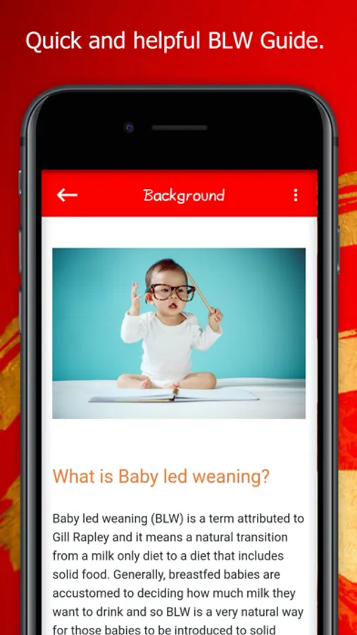 This BLW app also offers background information on BLW with references to Gill Rapley and scientific journals. It also includes World Health Organization nutritional information. The science is simplified so that all our readers can understand.