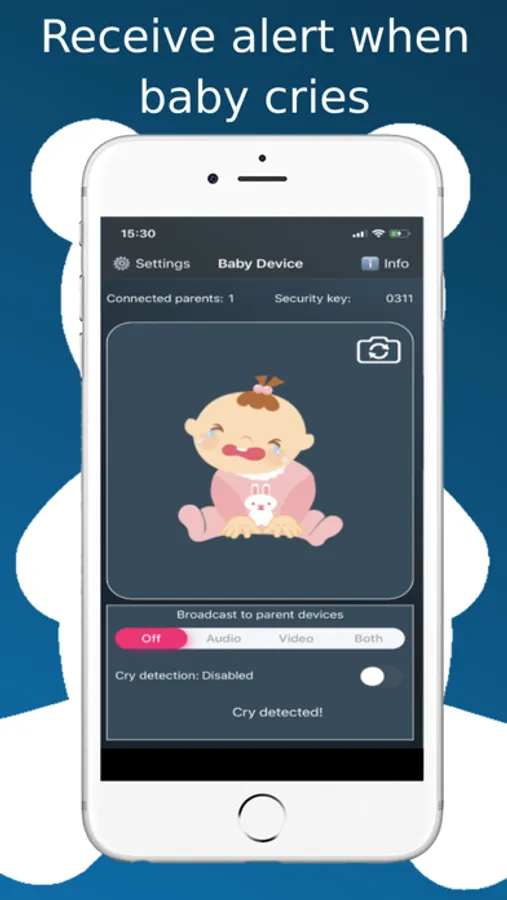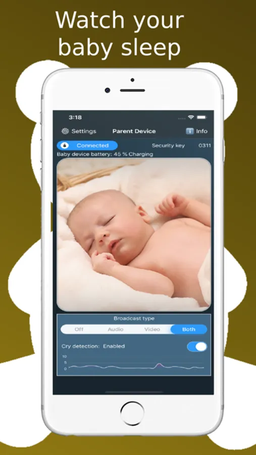 It requires 2 or more Apple iOS devices: iPhone, iPad, iPod Touch. One will be "Baby device" where the cry detector transmits alerts to the "Parent device". If the parent wants, the "Baby device" can stream Audio, Video or both from the "Baby device".