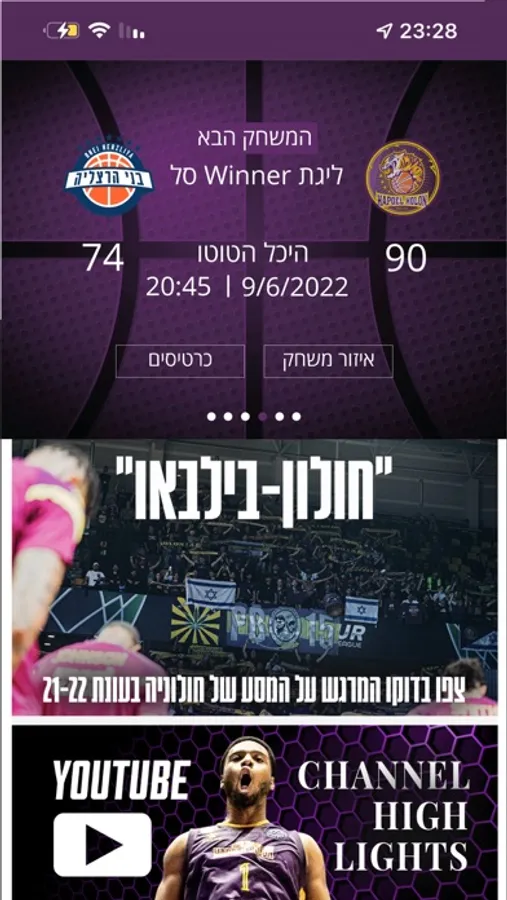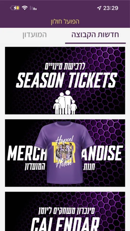 סגול עולה לאפליקציה! הפועל חולון מציגה את כל העדכונים שאתם צריכים בזמן אמת - ישירות מהנייד. האפליקציה החדשה מאפשרת לכם להתעדכן ב: מועדי ותוצאות משחקים, סטטיסטיקות, כתבות סגולות, כרטיסים אונליין למשחקים, תמונות ועוד! קליק אחד והאפליקציה אצלכם. לחצו להורדה.