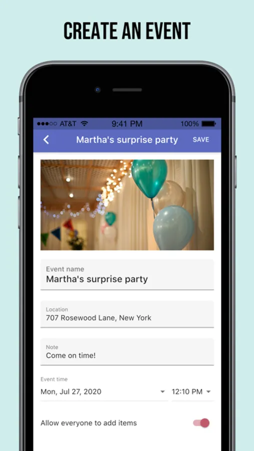 • Invite friends to your events by sharing an invitation in an email, SMS, WhatsApp, or Facebook post!