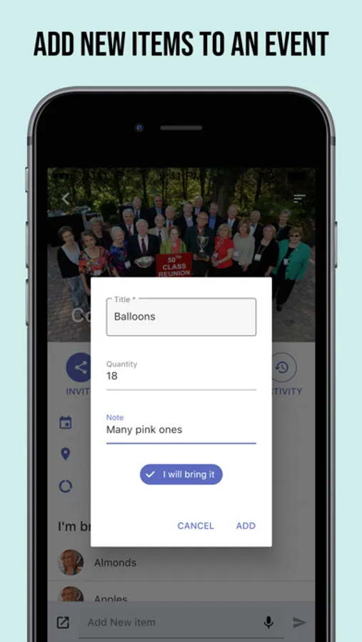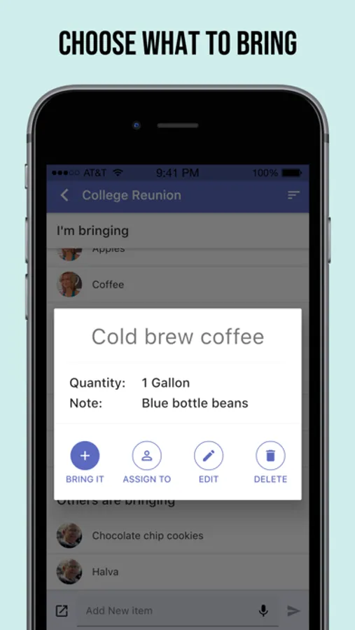 BringIt is a FREE app for organizing together with friends, neighbors, co-workers, and loved ones!