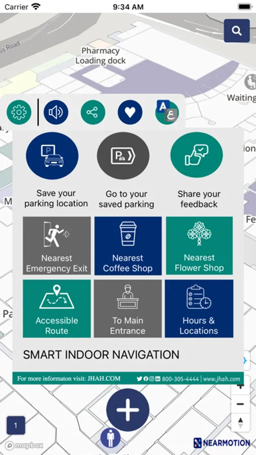 JHAH WayFinding helps you to find Clinics, Clinical support Services "Lab, radiology, Pharmacy" & Non - Clinical Support Services "Coffee Shop, Flower Shop, Waiting areas"