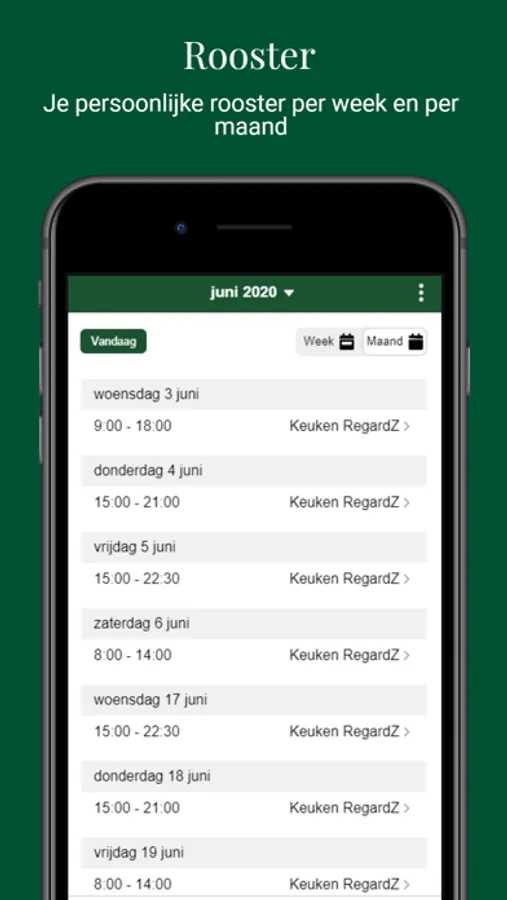 - Je rooster inzien per week of per maand en deze downloaden naar je eigen agenda!