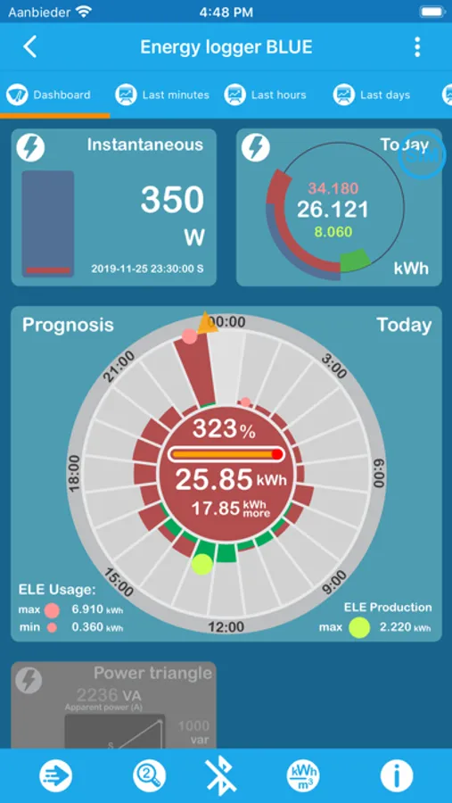 The “Energy logger BLUE” application allows you to monitor and log the electricity usage and production, (also gas usage if gas meter is available), empowering you to save on energy costs.