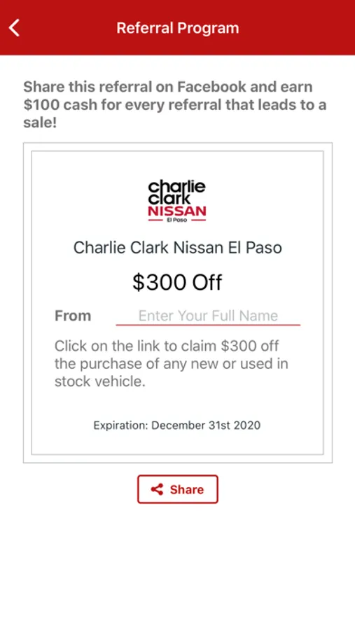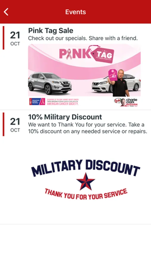 Charlie Clark Nissan El Paso dealership loyalty app provides customers with an enhanced user experience. The mobile dealership app provide customers with relevant specials and loyalty offers. Key features include: