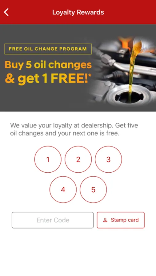 - Loyalty Rewards: earn a free oil change by stamping your digital card each time you visit our service center and track your rewards.