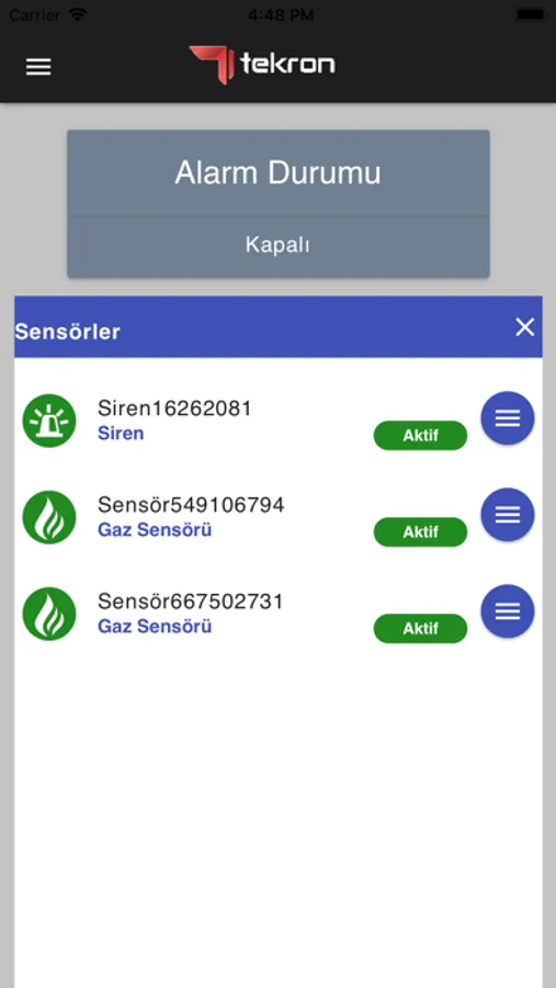 Bu uygulama ile evinize veya işyerinize kurulmuş olan, Tekron Alarm Sistemine sensör ve siren ekleyebilir, uzaktan kontrol edebilirsiniz.