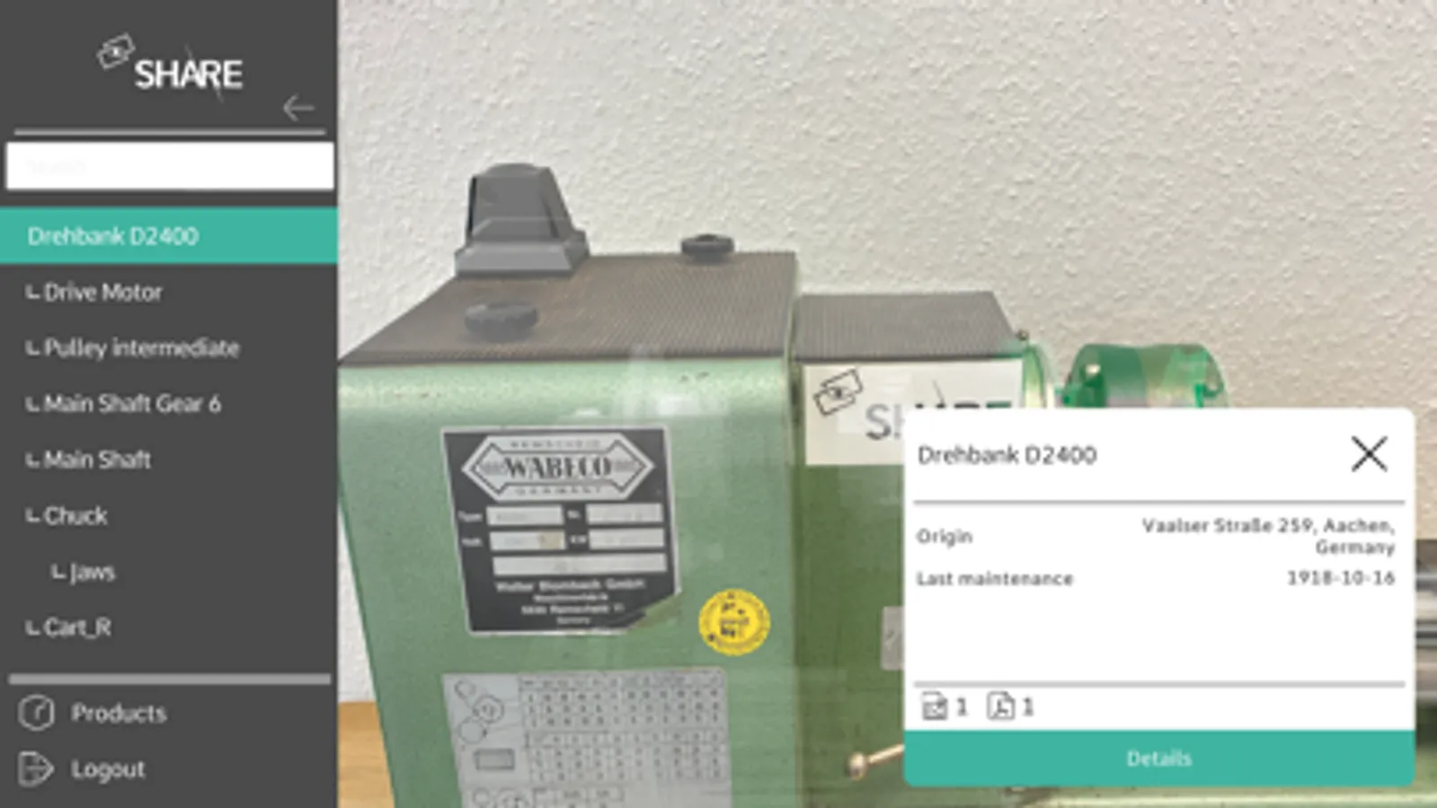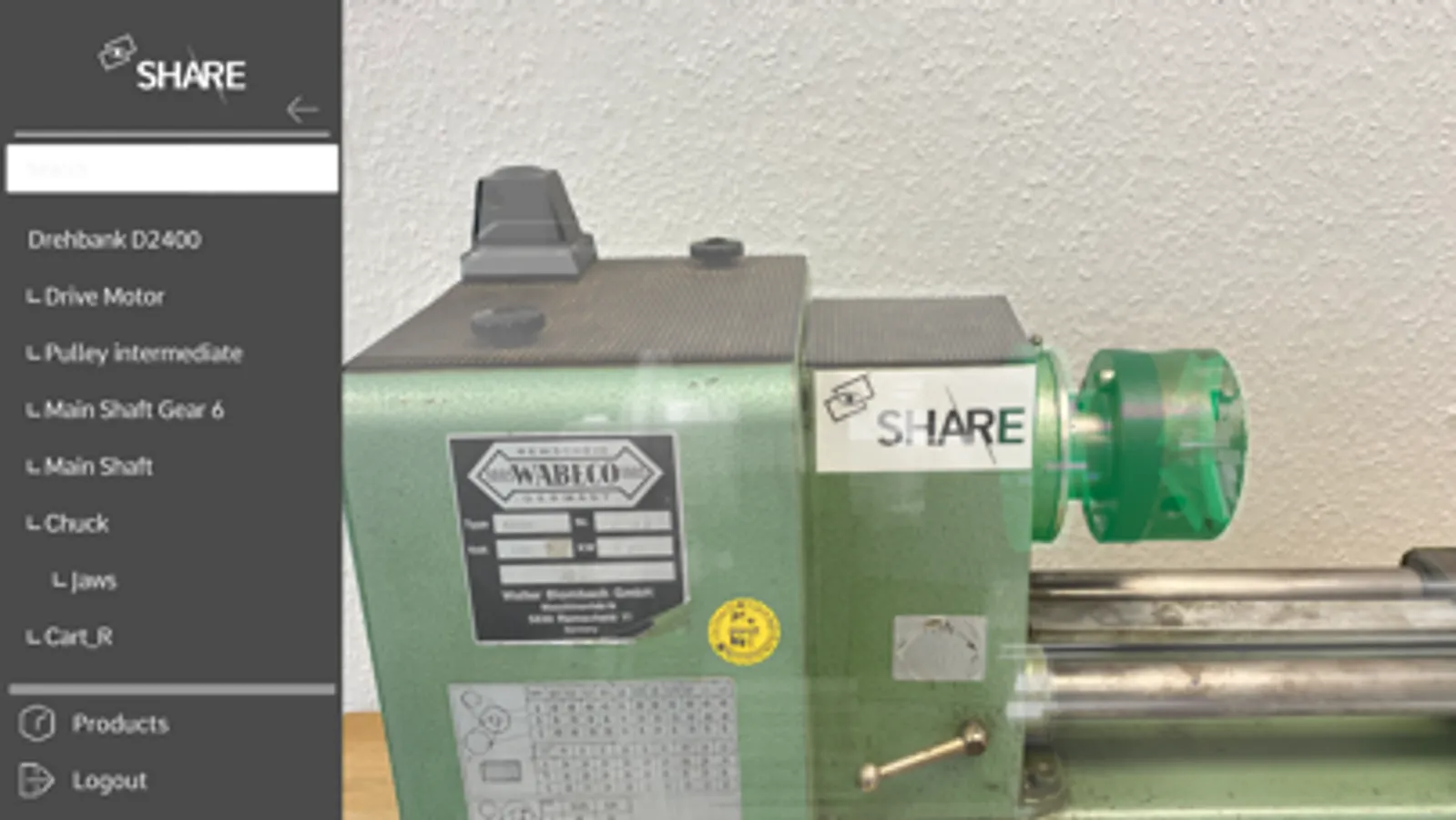 The oculavis SHARE AR Viewer is the new way to provide powerful interactive experiences on your machines to service technicians and customers alike. With just a few clicks, the user can go from the CAD model of a machine to an interactive Augmented Reality visualization. By overlaying an AR model over the real machine, the user is able to quickly get a first look into the machine without disturbing the ongoing machine operation. Once the user has opened up the machine, it becomes fascinatingly easy and intuitive to retrieve documents, cases and workflows belonging to specific components of the machine.