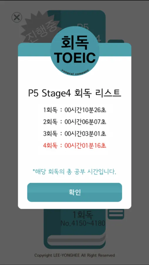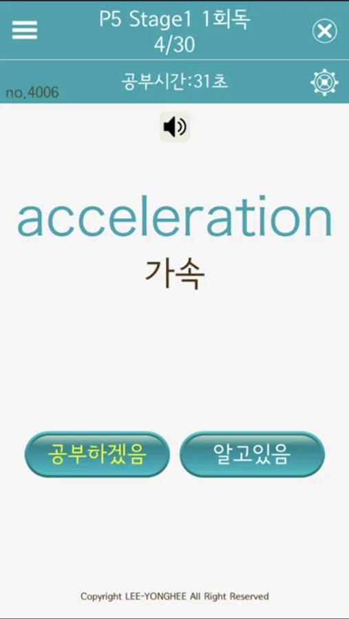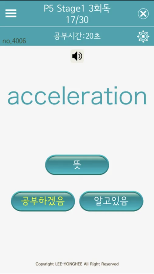 "공부하겠음"을 누른 단어만 반복적으로 나옵니다.