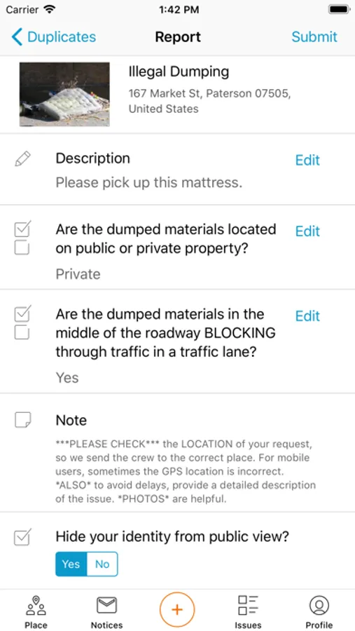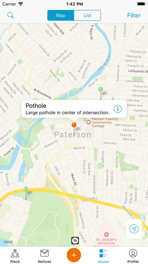Residents of Paterson, New Jersey can now easily report potholes, illegal dumping, street light or street sign requests, and numerous other problems that need attention through PATERSON PLUS. This app uses GPS to recognize your location and gives you a menu of common quality-of-life conditions from which to choose. Residents can upload pictures or videos to accompany the request and will be notified directly of updates to the requests they or other members of the community have submitted. Residents can also call Constituent Services (973-742-INFO) for information on any municipal service or to report a problem.