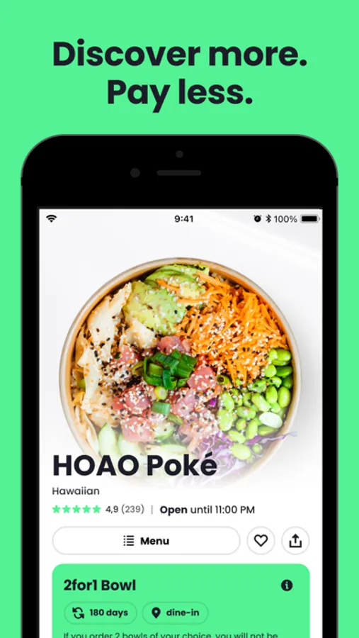 You always have all the deals in your pocket. Check out which restaurants are in your area and invite you.