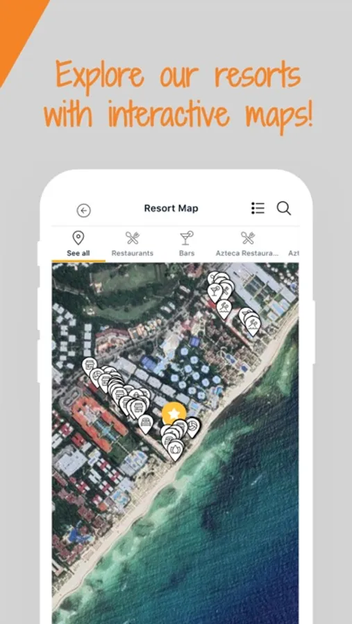 - Look for any POI in the hotel and find it in the map, even without Wifi connection. You will always find our way around our resorts.