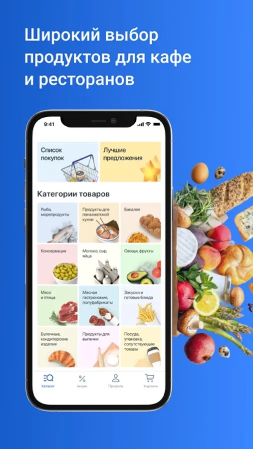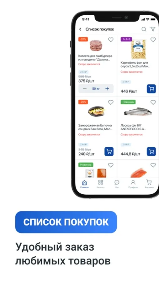 Мобильное приложение GFC – удобный инструмент закупок для шеф-поваров и менеджеров по закупкам в HoReCa. Здесь можно заказать продукты онлайн для ресторана или кафе - от рыбы и бакалеи до мяса и молока со склада в выбранном городе.