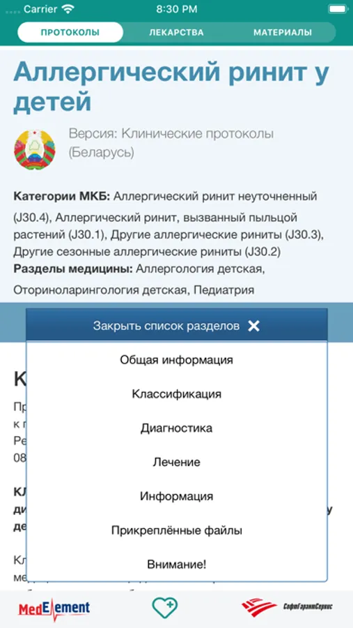 Бесплатное мобильное приложение для врачей "Lekar Pro" создано при сотрудничестве компании ООО "Софтгарантсервис" и международной медицинской платформы MedElement (medelement.com). Приложение содержит полную базу клинических протоколов диагностики и лечения Министерства здравоохранения Республики Беларусь, а также справочник лекарственных средств и информационно-справочные материалы для врачей.