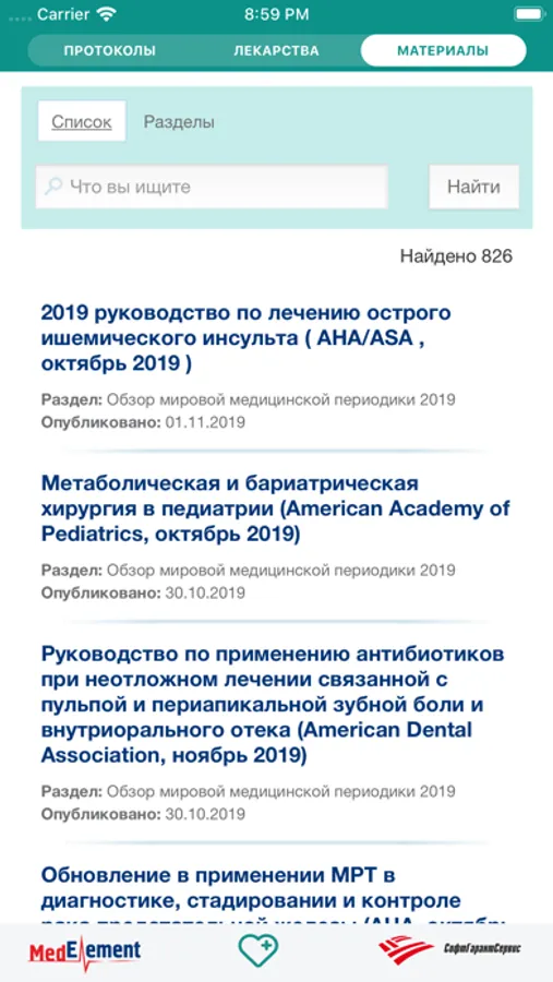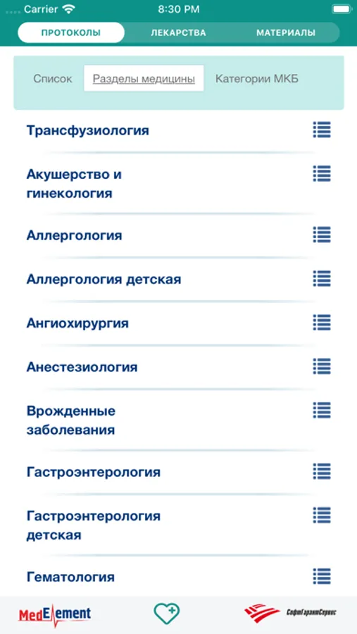 - Быстро найти нужный протокол: по названию, коду МКБ, году одобрения, разделу медицины;