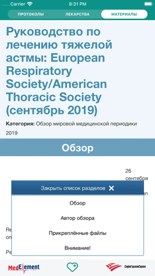 - Раздел полезных материалов для врачей и пациентов (обзоры мировой медицинской периодики, статьи, памятки).