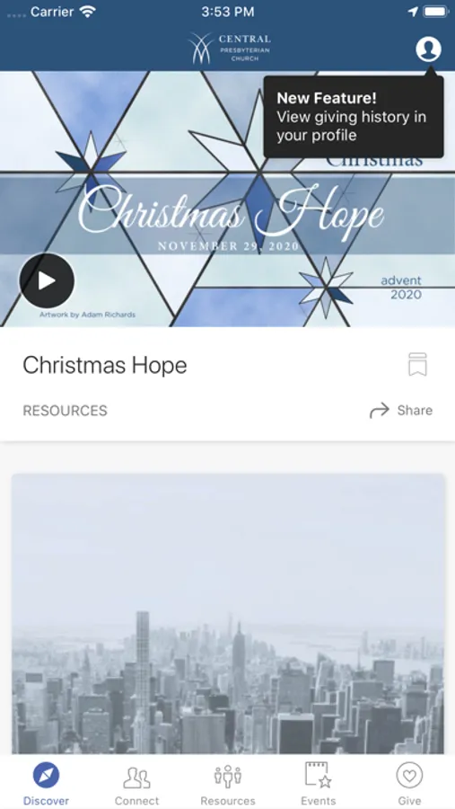 Connect and engage with our community through the Central Presbyterian Church app! Download our app to listen to sermons, make a donation conveniently, view upcoming events, and much more! Our vision is to be a church that experiences the transformative power of the gospel and responds in reliance upon the Holy Spirit by following Jesus Christ in his mission to make all things new at Central, in New York City, and throughout the world.