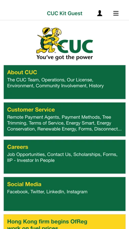 CUC Kit is an Engagement and Collaboration App for customers and staff of Caribbean Utilities Company, Ltd. (CUC). CUC Kit is designed to educate users about CUC's current and upcoming events, along with providing access to other resources, such as applying for job vacancies, signing up for company events, and service interruptions monitoring. Users can also find and follow CUC on social media via CUC Kit.