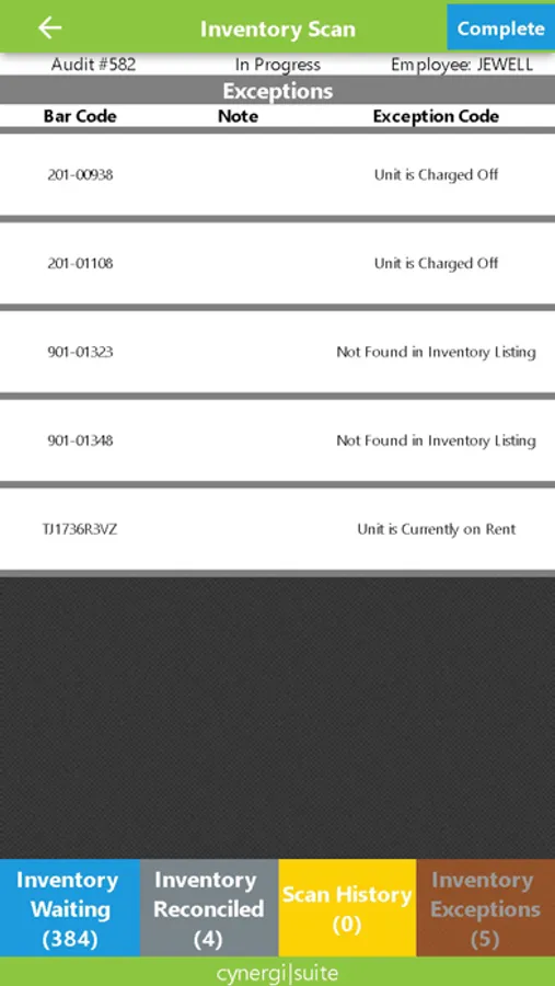 Need to make an exception or notes on inventory? No problem. You can easily enter explanations when you scan an item. Best of all, the Inventory Scanning app syncs with cynergi|suite, providing a safe, secure home for all your audit data.