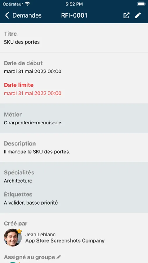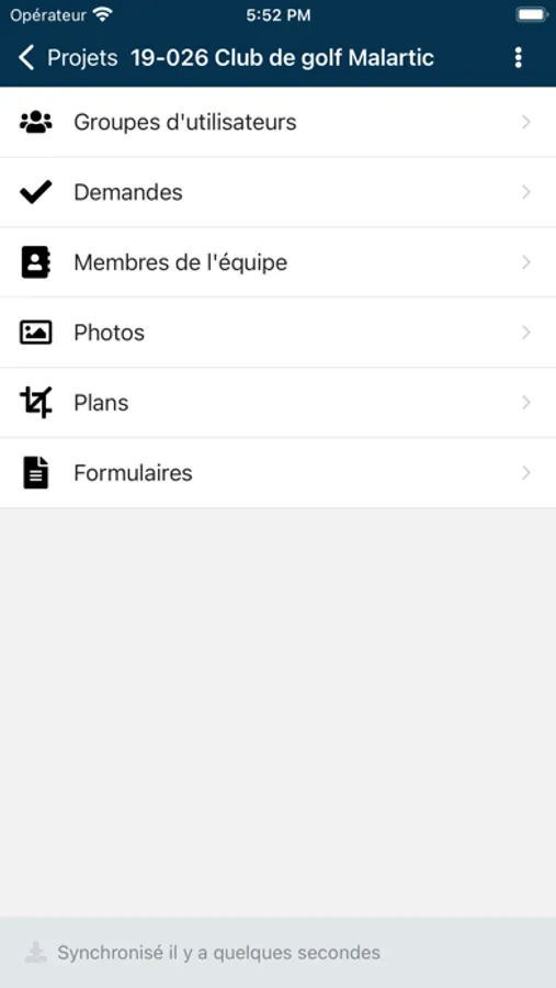 ajouter des photos de chantier, consulter les plans du projet, soumettre des formulaires et gérer les tâches et actions correctives en cours.