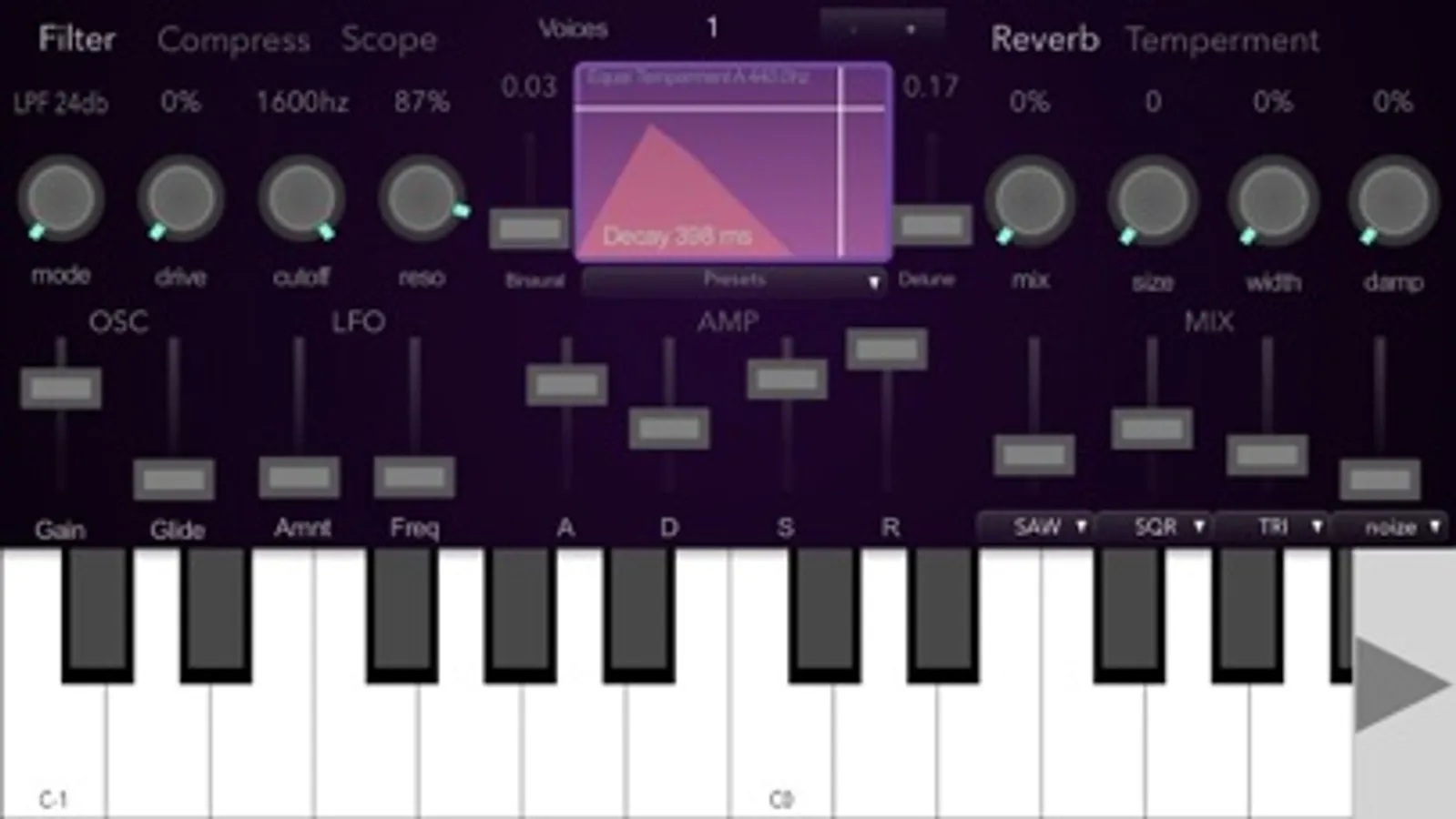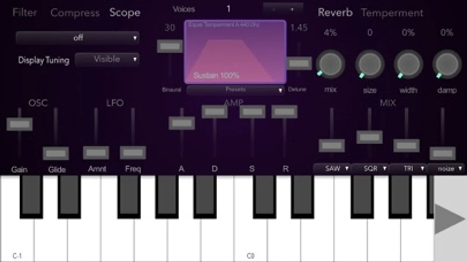 High fidelity Synthesizer designed for generating Binaural beats and exploring alternate scales.