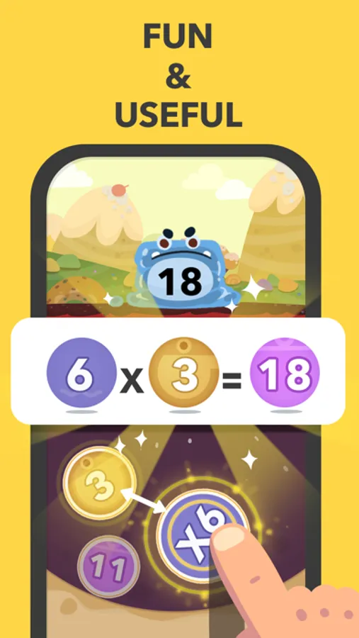 The rule of the game is simple: by dragging two balls together and get a result of a targeted amount, the enemy will be defeated. Before each game, players will see their "enemy" (target number) and tips to make the target number. When players struggle to make the targeted number, they get a hint during the game. After each game, players can review the equations they've used in the game. This feature will help them monitor their progress in learning each skill.