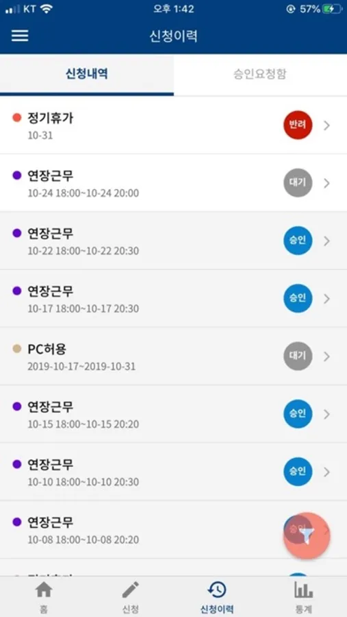 - 휴가, 연장근로, 기타근무시 신청을 통한 승인처리