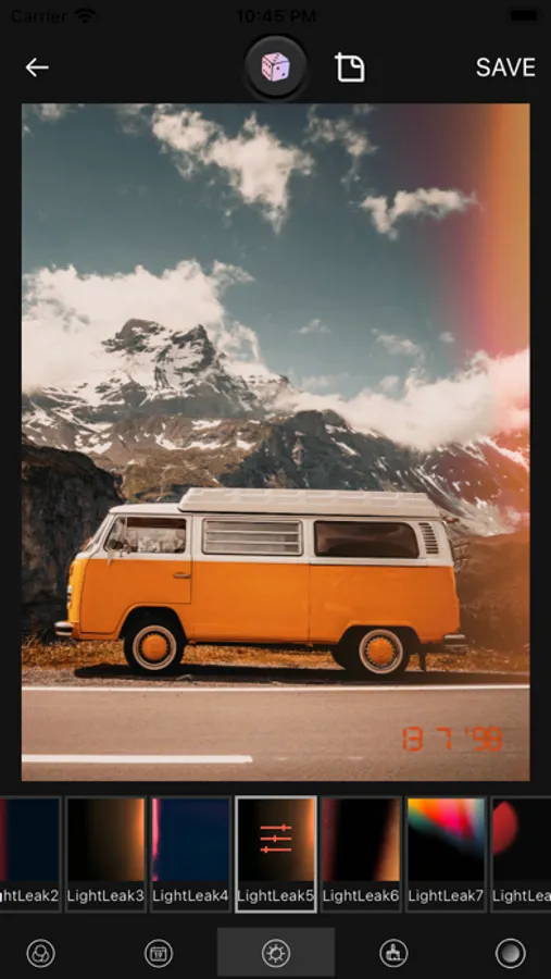 - Random light leak filters
