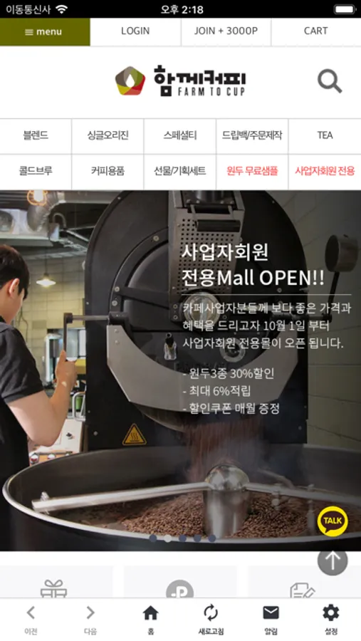 원두커피 전문 기업, 함께커피 공식 애플리케이션입니다.